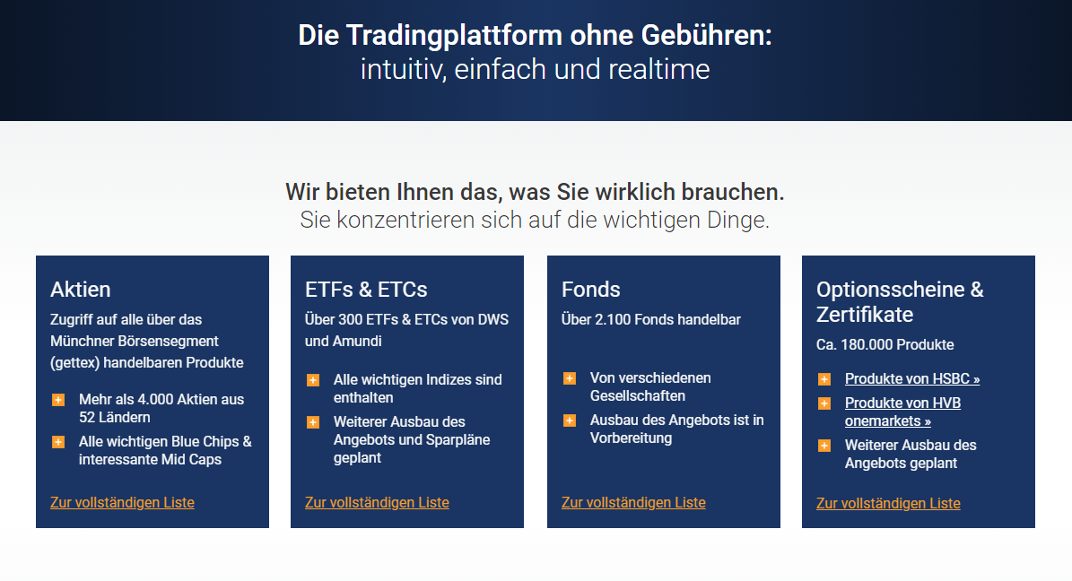 Das Trading-Angebot beim Gratisbroker Test auf einen Blick:
