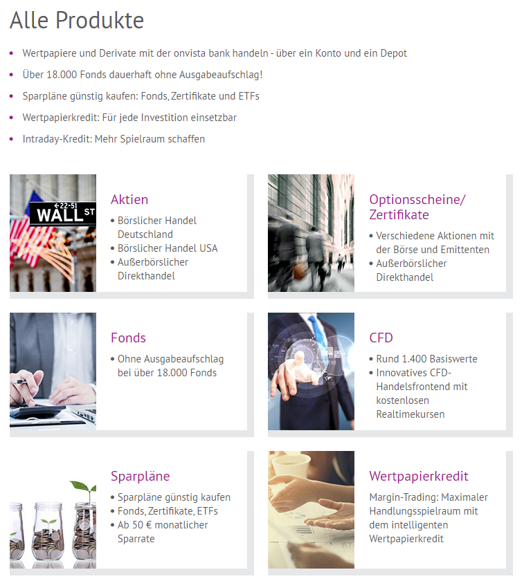 Das vielschichtige online Depot bietet ein massives Angebot an Informationen zu den ETFs, das zugeschnitten auf die unterschiedlichen Erfahrungen der Trader und auf die Anleihen ist. Demnach können Sie sich vor dem Einsatz über ETF, Futures und Optionen informieren und in wenigen Schritten Ihr Depot eröffnen. Nutzen Sie die Möglichkeit und schließen Sie ein Depot ab. Mit einem kostenlosen Onvista Depot können Sie mit wenig Erfahrungen starten und Ihre Fragen direkt an den Kundenservice stellen.