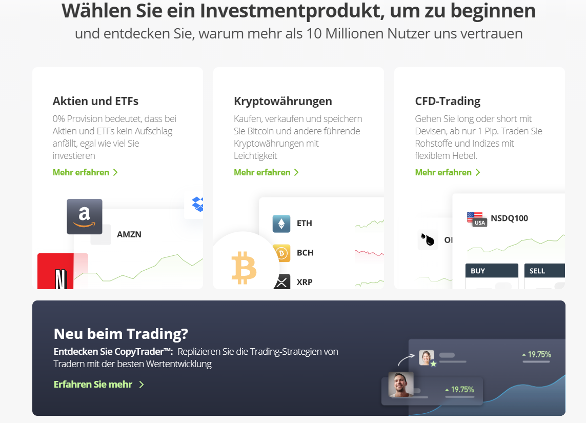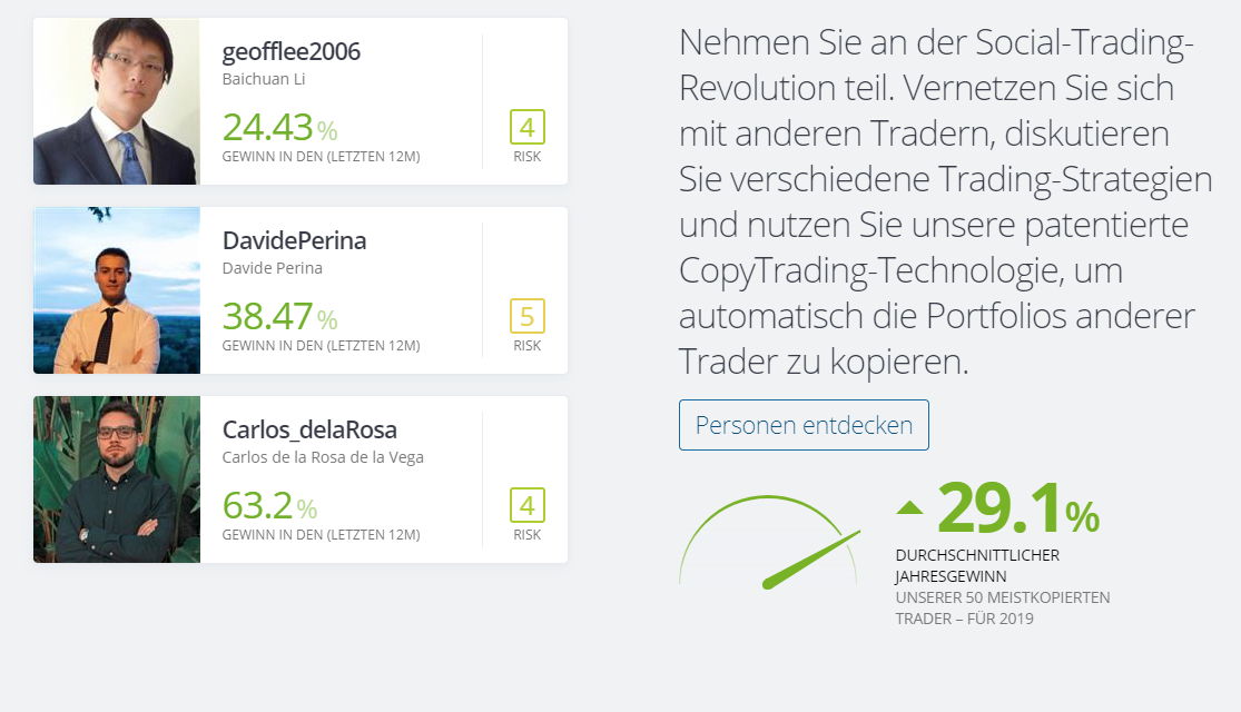 Nie powinieneś podejmować wysokiego ryzyka i przyjrzeć się Popularnemu Programowi Inwestorskiemu eToro, który zainspirował już miliony klientów przed nimi. Szczególnie duży wybór na platformie social tradingowej mówi sam za siebie. Niewielu inwestorów straciło tu jeszcze swoje pieniądze. Skorzystaj z silnej społeczności inwestorów i wspierających i bądź zachęcany przez tych, którzy odnieśli sukces w branży. Z tego powodu broker eToro uruchomił specjalny program. Jeśli należysz do skutecznych przewoźników i jesteś szczególnie często kopiowany przez innych użytkowników ze społeczności eToro, otrzymasz większy podział zysku. W ten sposób nastąpiła demokratyzacja wiedzy finansowej, tak że każdy chętnie poświęca trochę czasu i studiuje rynki, aby zbudować skuteczną strategię inwestycyjną, z której może czerpać podwójne zyski.