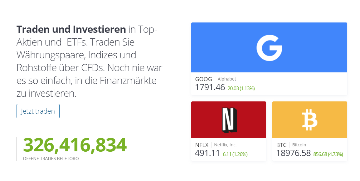 Pamiętaj, że kontrakty CFD to złożone strategie inwestycyjne, z którymi trzeba się zapoznać, aby je zrozumieć. eToroJest zainteresowane zyskiem i wartością dodaną swojej platformy. W ten sposób przewoźnicy i klienci mogą korzystać już od pierwszej wizyty i inwestować pieniądze bardziej lukratywnie w akademii z dostawcą, kupować odpowiednie akcje i rozumieć wszystkie funkcje w eToro Social TradingAt first go. To brzmi zbyt dobrze, by mogło być prawdziwe? Postępuj zgodnie z instrukcjami na czacie na żywo u brokera, a wkrótce będziesz czerpać zyski z platformy multi-asset.
