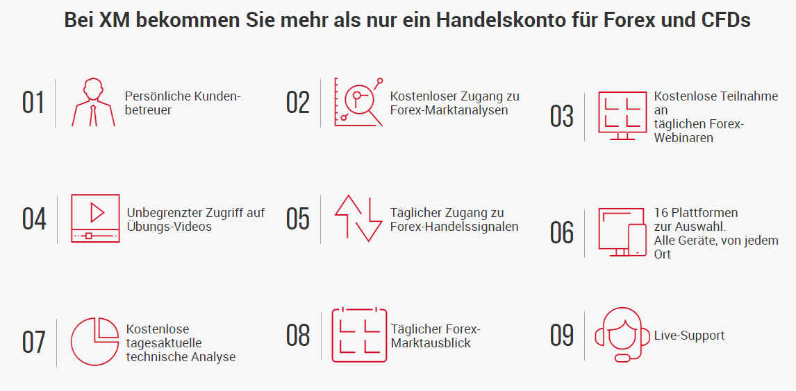 Doświadczenia pokazały, że Xm jest brokerem, u którego łatwo jest rozpocząć handel na rynku Forex i CFD. Konto otwierane jest już po kilku minutach. Doświadczenie pokazuje, że konto jest bardzo przyjazne dla użytkownika. Najważniejsze treści są wolne od błędów. Ponadto, wszystkie informacje znajdują się w języku niemieckim. Wreszcie, broker xm.com bardzo szczegółowo wyjaśnia wszystkie warunki, instrumenty i konta. Ze względu na prosty język, początkujący będą w stanie bardzo szybko zrozumieć, jak działa handel z brokerem xm.com.