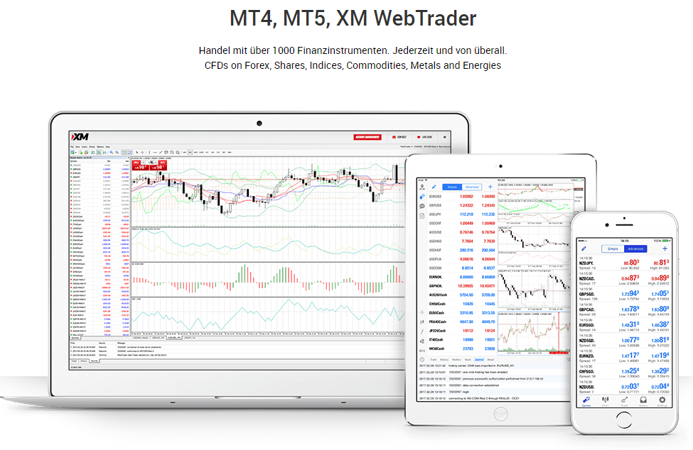 Kiedy klient otworzy rachunek w XM, ma dostęp do XM Web Trader 5 i XM Web Trader 4, jak również do Metatrader 4 i Metatrader 5. To sprawia, że platforma handlowa jest najczęściej używana na świecie. Nieograniczona liczba wykresów i wskaźników technicznych jest dostępna, aby pomóc w handlu. Oprócz wersji desktopowej, można również uzyskać dostęp do konta handlowego poprzez iPhone, iPad lub poprzez smartfon i tablet z systemem Android. Prawie wszystkie funkcje MT 4 są dostępne online bez ograniczeń za pośrednictwem aplikacji mobilnej. Jeśli nie chcesz pobierać żadnego specjalnego oprogramowania na swój komputer, możesz po prostu używać XM WebTrader 5 i XM WebTrader 4 online z przeglądarki za pośrednictwem xm.com.